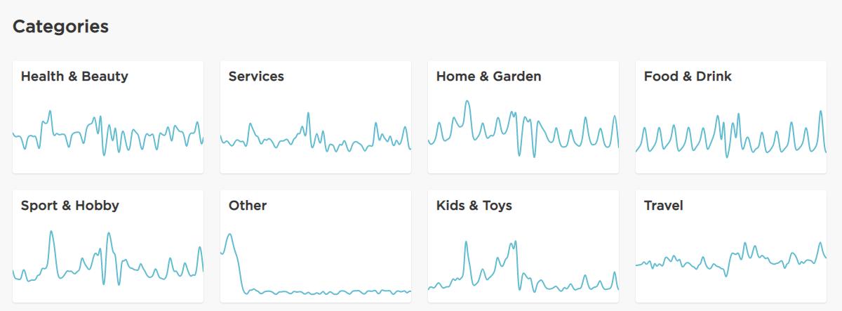 Another tool that turns customer data into simple graphs is Meniga. Sometimes simple visuals are best, and this is a perfect example, as Meniga Consumer Trends makes it very easy to quickly find insights on shopping trends.